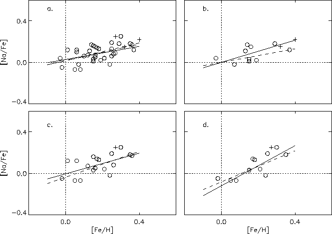 relations found by Edvardsson et al. (1993a) by solid lines. In panel