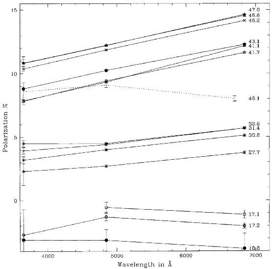 Figure 2: Wavelength dependence of polarization for Comet Hale-Bopp,