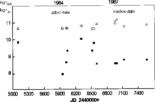 period 1987-1989. Since the origin of Balmer emission in an accretion disk seems to