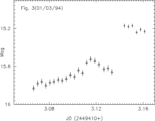 On 01 March 1994, the source was averagely 0.8 magnitude brighter than
