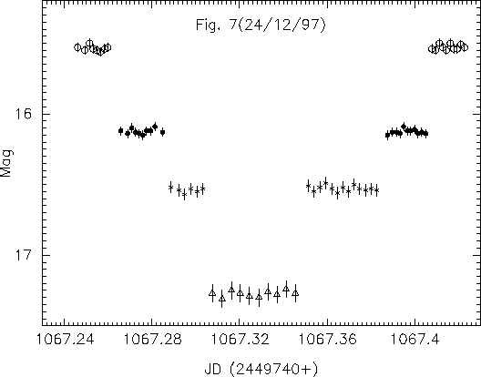 Light curves of PKS 0735+178 on 24 Dec. 1997.