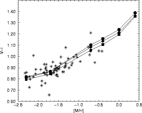 pronounced in V-I. The models also show that the (V-I)-metallicity