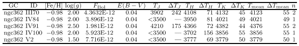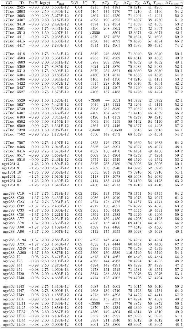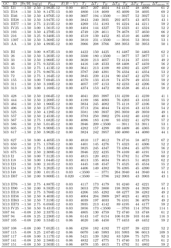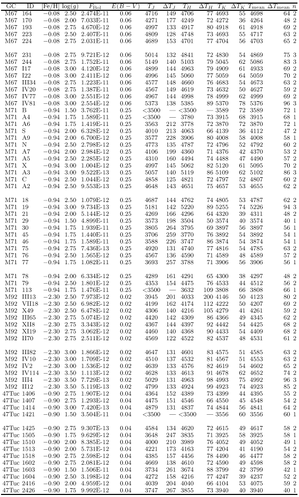 Temperatures derived for the globular cluster stars of the sample. Column 1